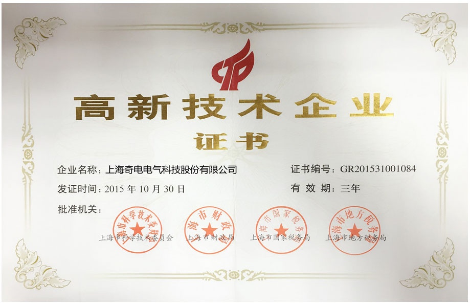 热烈庆祝上海xj星际1277电气科技股份有限公司荣获由上海市科技部、上海市财政部、上海市国家税务总局和上海市地方税务局联合颁发的高新技术企业证书。