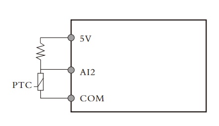 Ai2可接受电机温度传感器输入,当电机温度超过保护值时,变频器输出故障并停机。  ;